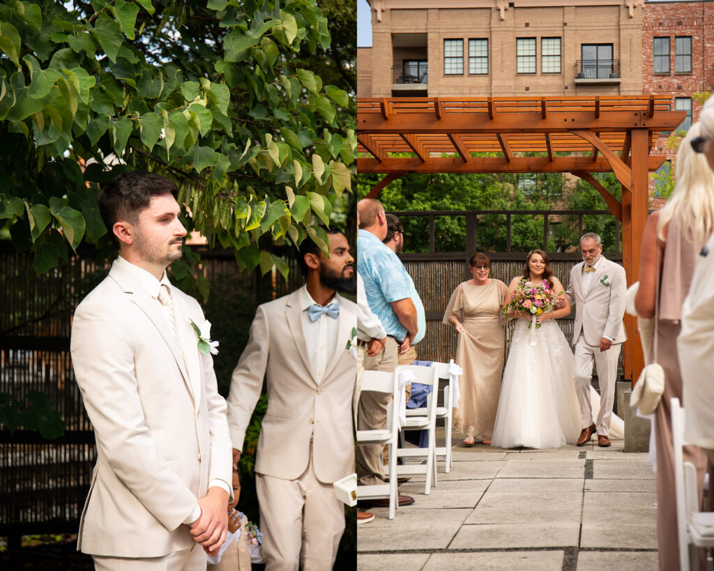 A few weeks ago I was driving to Zen in Greenville, SC on the way to Haley and Logan’s wedding. It was sunny and hot when I left and pouring rain as I arrived. It would continue to rain off and on for the next few hours and we kept an eye on the weather, as the ceremony was set to be outside. Haley was such a laid back bride and made the call to go ahead with the outdoor ceremony, rain or shine. This worked out perfectly as the rain cleared just in time and the ceremony space was beautiful!